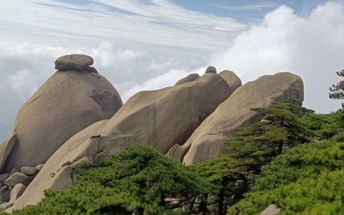 龟峰山迎客松据说是明王朱元璋在此避难之时亲手栽种,至今已有583岁高龄。